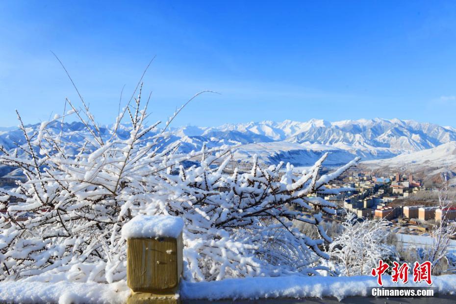 4月16日,地處祁連山腳下的甘肅肅南裕固族自治縣現唯美霧凇景觀。晶瑩的霜花、冰凝附著在樹枝上,遠望銀裝素裹,潔白一片,宛如仙境。由于連續降雪,當地草原積雪最厚達10厘米,并出現大霧,驟降的氣溫使得消融的河水重新結冰,蒼茫大地一片銀裝素裹。武雪峰 攝 -