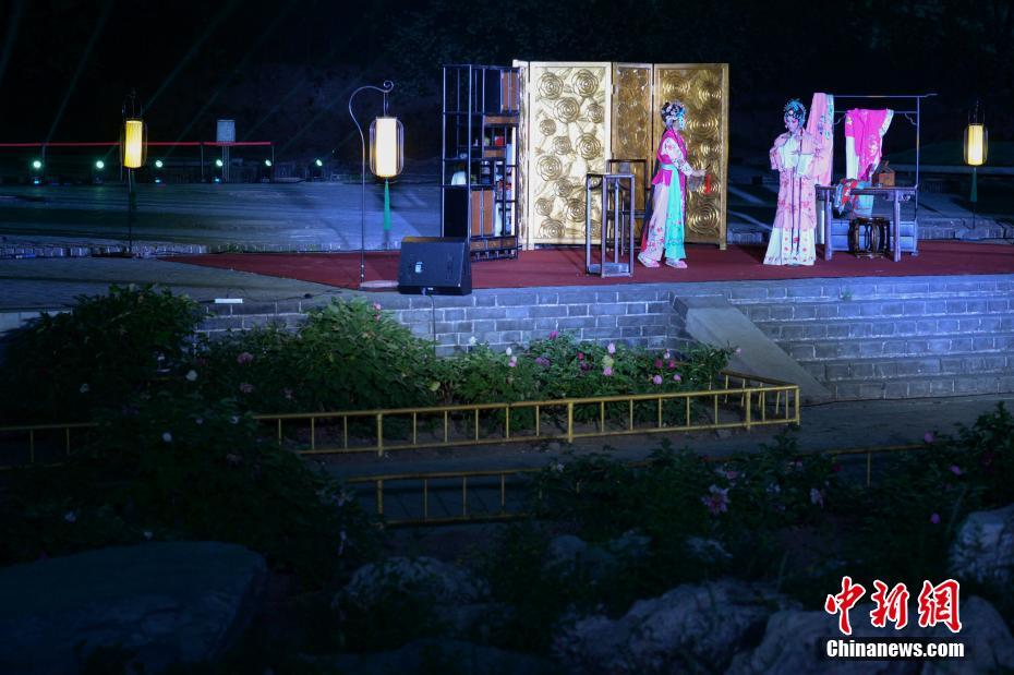 4月26日晚,園林版昆曲《牡丹亭》在北京圓明園含經堂遺址牡丹叢中上演。時值含經堂萬株牡丹花期,此番世界級皇家園林與昆曲的攜手演繹的“園林+戲曲”的首度跨界組合,也為現場觀眾帶來一場鮮活的文化體驗。中新社記者 崔楠 攝 -