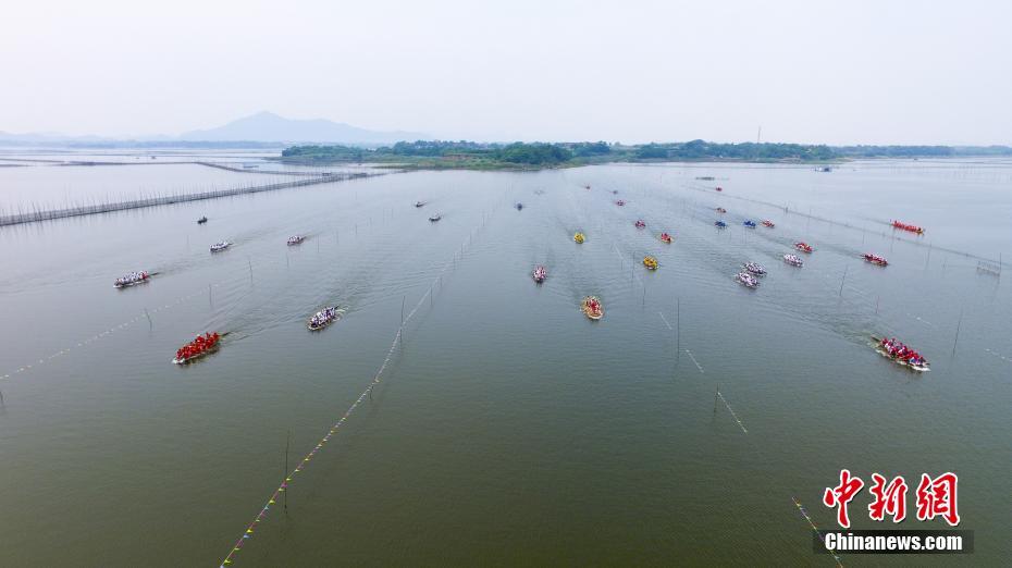 5月30日,是傳統端午節,江西九江縣城子鎮百年傳統龍舟節拉開帷幕,40只龍舟齊聚當地楊灣何,千余名觀眾從各地趕來圍觀,共度佳節。本次龍舟節以“棄陋習,樹新風”為主題,以繼承發揚傳統文化為目的,周邊民眾紛紛組織龍舟隊伍參加,不少村民從外地趕回參賽。 楊風勝 攝