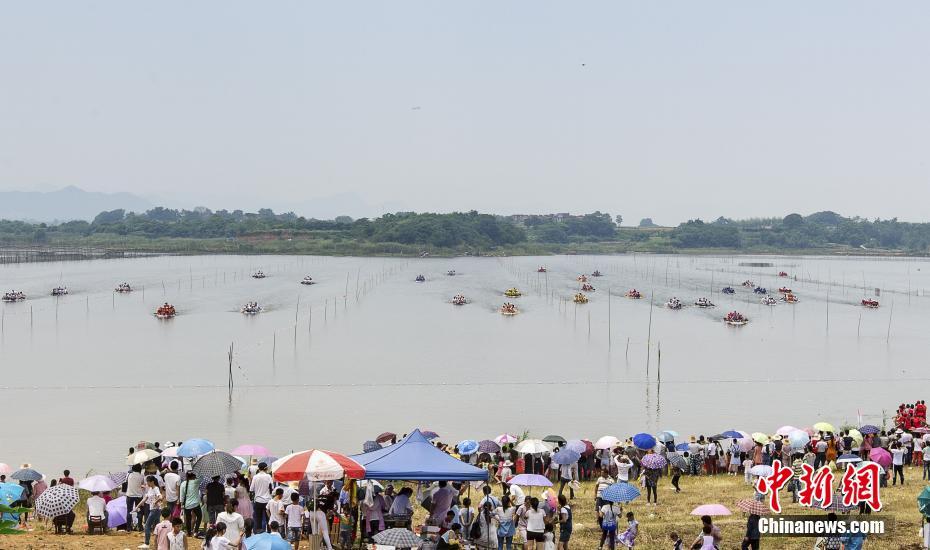 5月30日,是傳統端午節,江西九江縣城子鎮百年傳統龍舟節拉開帷幕,40只龍舟齊聚當地楊灣何,千余名觀眾從各地趕來圍觀,共度佳節。本次龍舟節以“棄陋習,樹新風”為主題,以繼承發揚傳統文化為目的,周邊民眾紛紛組織龍舟隊伍參加,不少村民從外地趕回參賽。 楊風勝 攝 -