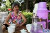 2017年7月11日,將“免費(fèi)茶攤”擺放好后,段守蘭終于可以短暫歇息了。近日,河南省許昌市學(xué)院路與蓮城大道交會處附近的樹蔭下,有一個(gè)“免費(fèi)茶攤”十分顯眼。圓桌上放有4個(gè)白色的茶杯、兩個(gè)暖瓶、一個(gè)透明杯,周圍放著4個(gè)馬扎,桌子前方一個(gè)小黑板上寫著“免費(fèi)喝茶”幾個(gè)字。 -