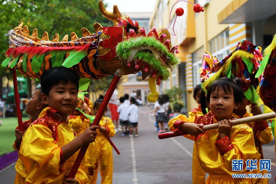 • 7月19日,在南陽市實驗幼兒園,孩子們在老師的帶領下進行舞龍游戲。