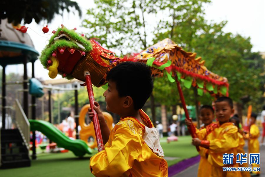 • 7月19日,在南陽市實驗幼兒園,孩子們在老師的帶領下進行舞龍游戲。據了解,該園通過舞龍、劃龍舟、趕蝸牛犁地等傳統游戲,寓教于樂,讓孩子們釋放天性,傳承文化。新華網發(陳輝 攝)