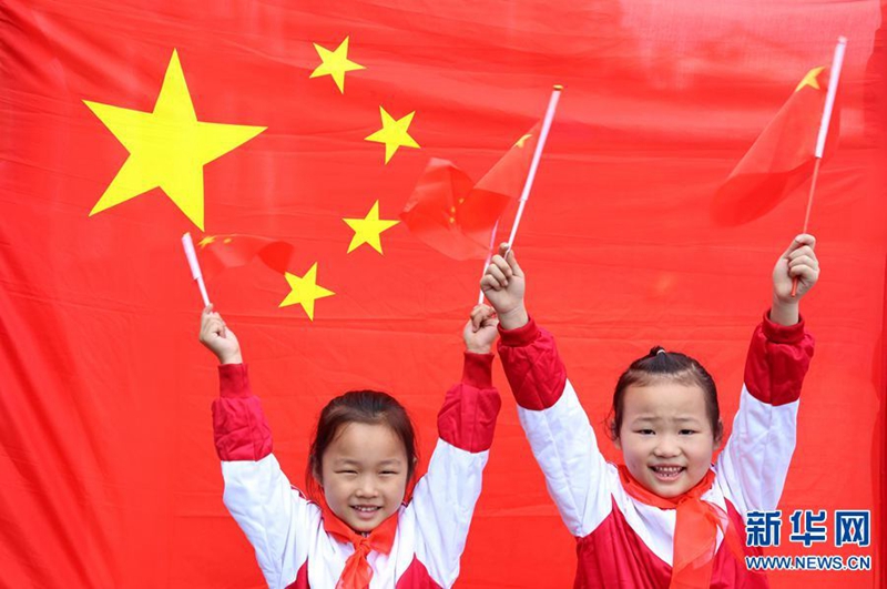 •       9月30日,河南省溫縣西關小學學生與國旗合影。國慶節臨近,河南省溫縣西關小學開展“我和國旗合個影”主題教育活動,學生們通過向國旗敬禮、國旗下的演講、我和國旗合個影等活動,表達對祖國的熱愛和美好祝福。新華網發(徐宏星 攝)