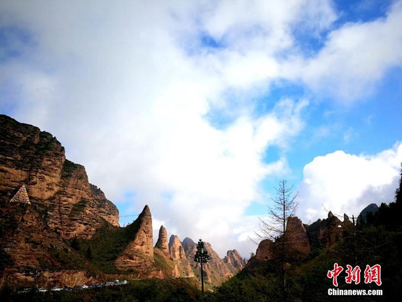 9月30日,在青海省東南部的坎布拉國家地質公園,一場秋雨過后,煙霧繚繞,恍如人間仙境。坎布拉丹霞地貌以巨峰、方山、洞穴、峭壁為主,還有帷幕式地貌和蜂窩地貌,是藏民族的傳統棲息地,也是藏傳佛教復興發達重要之地,是國家級森林公園、國家級地質公園、國家級水利風景名勝區,優美風景加之獨特文化內涵,吸引大批游客和攝影家舉起鏡頭,參加當地舉辦的青海坎布拉旅游攝影節。圖為海坎布拉地質公園內的巨峰。張添福 攝 -