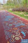 11月7日,鄭州市南三環(huán)與中州大道附近,西吳河公園內(nèi)新建的“科普健身步道”,1036米長的紅褐色步道,地面上畫有色彩斑斕的藝術(shù)科普圖案,吸引不少市民前來游園。 -