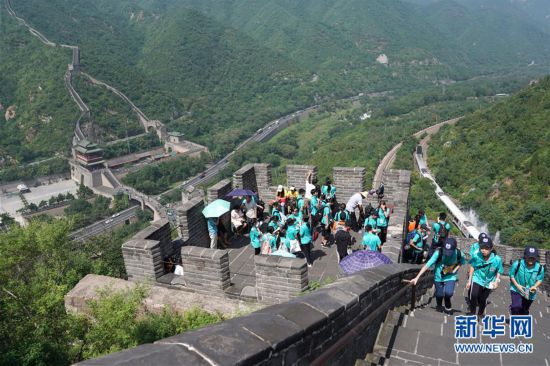 •   7月21日,參加“2019同心同根萬里行”活動的香港青少年在北京居庸關長城游覽。新華社記者鞠煥宗攝