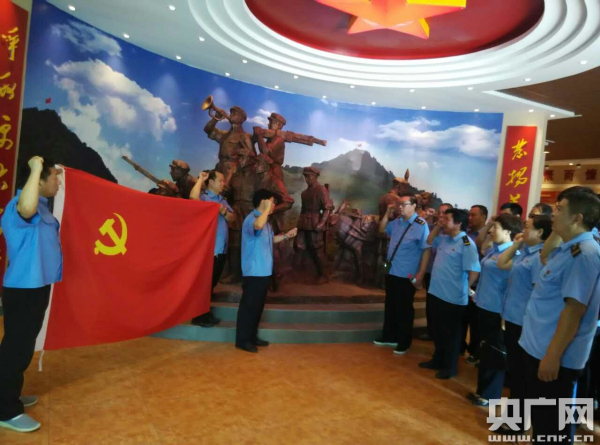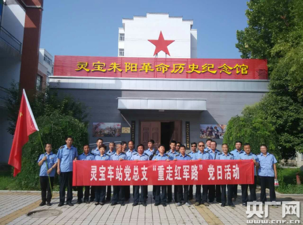 央廣網河南分網消息 8月16日,靈寶火車站黨總支組織26名黨員前往朱陽鎮參觀革命老區,重走長征路,重唱紅軍歌,重溫入黨誓詞,追憶革命精神,緬懷革命先烈,接受革命傳統教育。