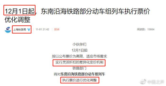 自2013年鐵道部被撤銷,鐵路政企分開以來,鐵路部門就在持續探索市場化發展的道路。火車票搞包括“打折”在內的各種“優化調整”,實際上早已不是什么新鮮事——早在2016年,國家發改委就曾下發通知宣布,“從2016年起,放開高鐵動車票價,改由鐵總自行定價”。自那以后,火車票價尤其是高鐵動車組列車的票價,就越來越靈活,出現了“打折浮動”、“一日一價”等更加豐富多樣的定價形式。