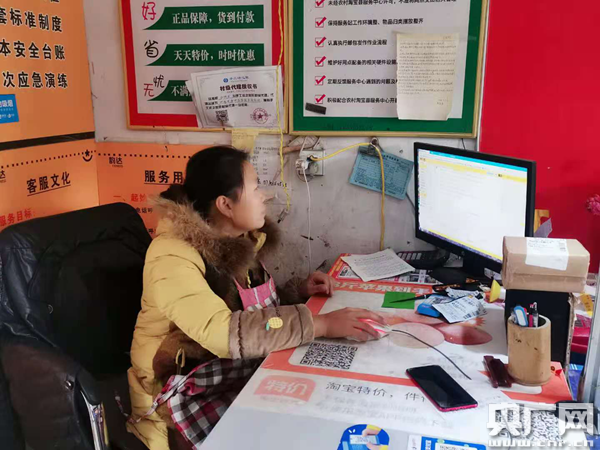 仝照星妻子樊苗苗在處理電商快遞業務(央廣網發 通訊員 曹家路 供圖)