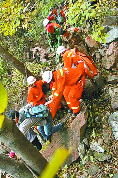 公安、消防、林業、醫院、驢友等各路人馬組成的救援隊,兵分四路,耗時4個小時成功救出被困者。