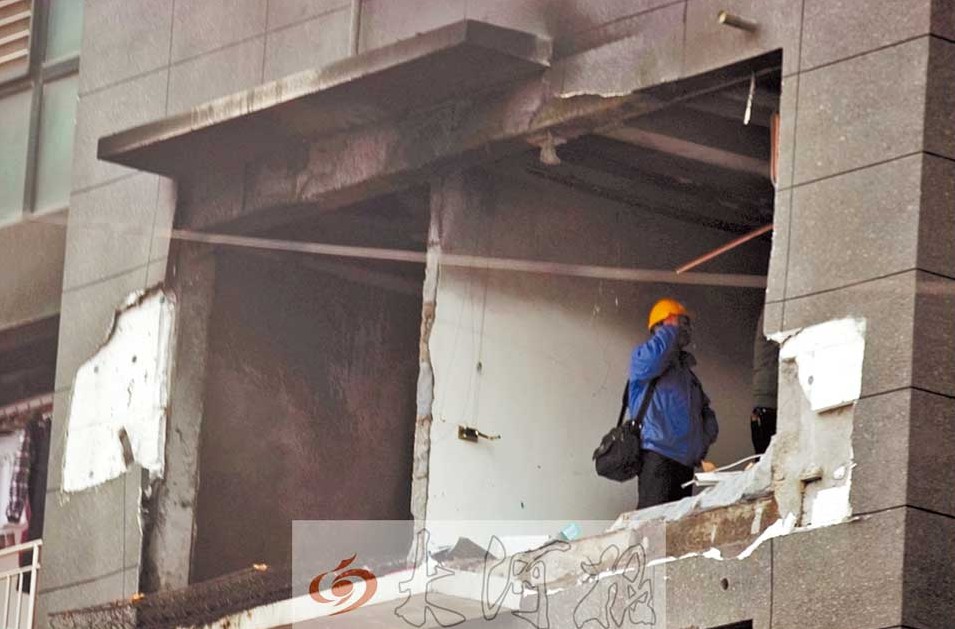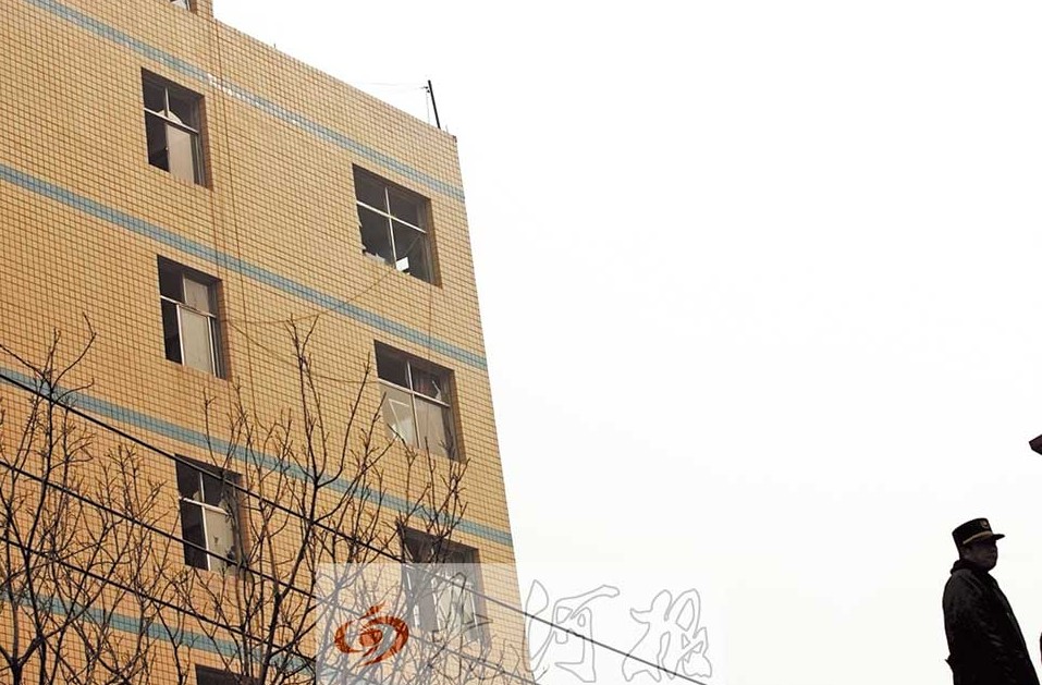 事發居民樓對面50米外的快捷酒店,窗戶大部分破損。