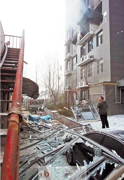 央廣網河南分網消息 據大河報報道:昨天上午8時25分左右,鄭州市西環路湖光苑小區一居民家發生爆炸,一人死亡一人受傷,初步查明事故是燃氣泄漏所致。死者是名男性,姓牛,今年22歲。 記者 閆化莊 攝影