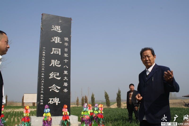 十八里鎮黨委副書記、鎮長張玉海對張先生的義舉表示肯定,他認為,在近期日本刪減教科書中的南京大屠殺內容、正式施行新修改的安保法的嚴峻背景下,在彰顯日軍又一大屠殺鐵證的“十八里村遇難同胞紀念碑”舉行祭奠儀式,意在深切緬懷70多年前遭到日寇屠殺的184位同胞,同時深情致敬在抗日戰爭中英勇犧牲的千千萬萬革命英烈。
