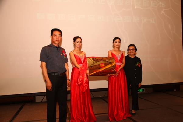 中國管理科學研究院企業家委員會董維章主任和中國發展戰略研究會、中國國際名牌協會解艾蘭會長為中小企業投資發展論壇會揭牌