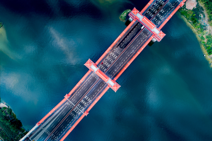 凌空俯瞰金峰大橋,紅色的廊亭、樓閣十分醒目的橫跨在九龍江西溪上。金峰大橋設(shè)計(jì)為景觀性大橋,主橋橋型采用“廊橋薌韻”方案,橋梁兩側(cè)人行道設(shè)置有長(zhǎng)廊和古亭,橫向設(shè)置兩座人行天橋,紅磚瓦、燕尾屋融入了閩南特色建筑元素。金峰大橋是漳州九龍江上第一座具有“閩南薌韻”廊橋和古亭標(biāo)志性的大橋,成為漳州一張最靚麗的名片。