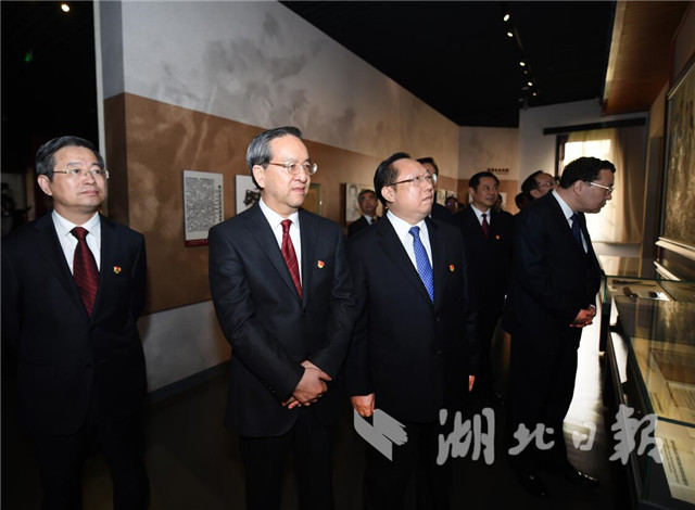 蔣超良和省委常委們一起,走進教務所、大教室,來到大操場,感受當時的革命氛圍。在“探索與奠基”專題展覽館,大家緩步而行,仔細觀看陳列的圖片和實物,一起了解、回顧、緬懷講習所的崢嶸歲月。