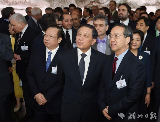 蔣超良說,黨的十八大以來,湖北認真貫徹實施長江經濟帶發展戰略,加快經濟轉型升級,加快全面建成小康社會,書寫了改革開放的精彩篇章。我們統籌推進經濟、政治、文化、社會、生態文明等領域改革,不斷增強發展的動力和活力;把消除貧困作為全面建成小康社會的重中之重,打好精準脫貧攻堅戰;踐行綠水青山就是金山銀山的理念,共抓大保護、不搞大開發,著力做好生態修復、環境保護、綠色發展“三篇文章”;積極對接和融入“一帶一路”建設,加快“引進來”和“走出去”步伐。荊楚大地發生的故事,折射出新時代湖北的顯著變化,也是新時代中國大踏步前進的生動寫照。我們將堅持新發展理念,堅決打好三大攻堅戰,著力解決發展不平衡不充分問題,以長江經濟帶發展推動高質量發展。真誠希望與各國朋友一道,秉持人類命運共同體理念,深化在產業、經貿、科教、人文、旅游等方面的務實合作,實現互利共贏,共創美好未來。