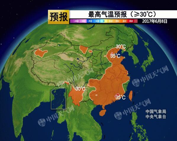 昨天,全國出現高溫的地區較少,今天,京津冀和華南地區的高溫將“升級”。中央氣象臺預計,北京、天津和石家莊今天都可能出現高溫天氣。其中北京最高氣溫將達到37℃,可能創今年來新高。不過華北這一輪高溫天氣比較短暫,周末開始氣溫明顯下滑,天氣轉涼爽。