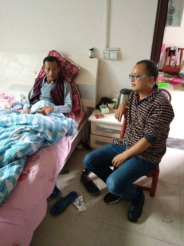 楊紅星老師在病床前看望精準扶貧戶劉繼申