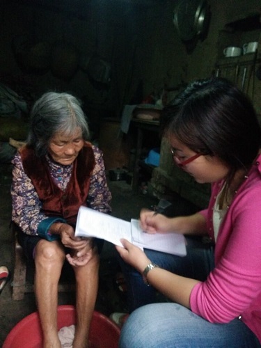 教師王麗在精準扶貧戶蘇奶奶家問她身體情況及需求