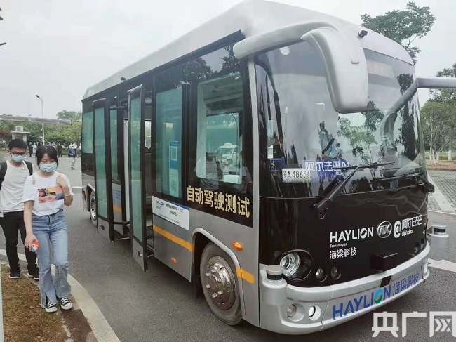 圖為:無人駕駛公交車 央廣網 發 記者張迪 攝