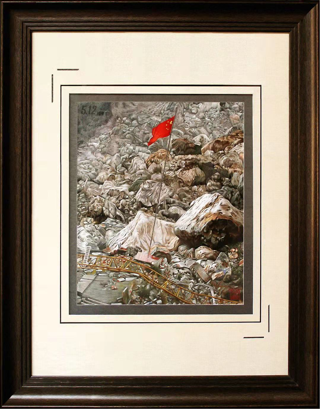 圖為:黃春萍為紀(jì)念汶川地震創(chuàng)作的《屹立的國(guó)旗》