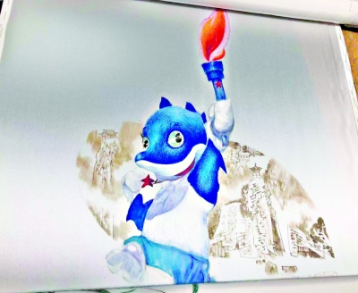 圖為:黃春萍為慶祝武漢軍運(yùn)會(huì)創(chuàng)作的《兵兵》