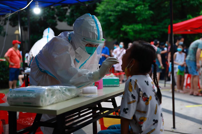 圖為:武漢兒童醫院醫護人員進行核酸采樣 央廣網發 通訊員供圖