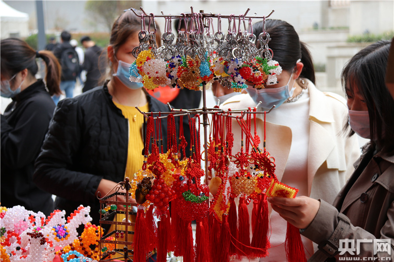 圖為:一些市民對喜愛的非遺工藝作品愛不釋手 央廣網發 李磊攝