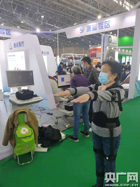 在位于醫療器械展館的智能化康復訓練器械體驗區,家住武漢硚口區的王阿姨正在體驗三維步態評估儀,只見她身穿感應裝置做出各種動作,位于左側的顯示屏上一個數據小人正隨她的動作改變形態。“這是我們公司最新研發的三維步態評估儀,使用者只需簡單穿戴數據傳輸裝置并做出動作,智能計算機便可根據其動作幅度判斷受評者關節部位是否發生病變。”該三維步態評估儀生產商說。