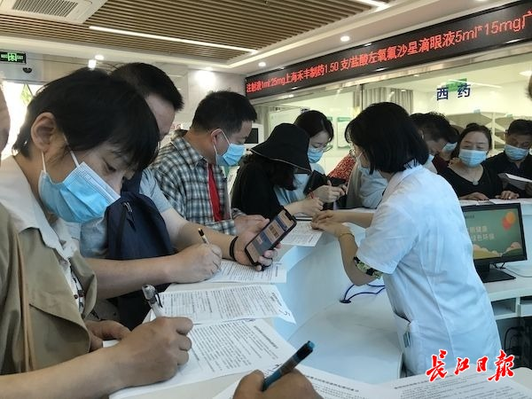 居民正在填寫疫苗接種知情同意書。 長江日報見習記者張思敏攝