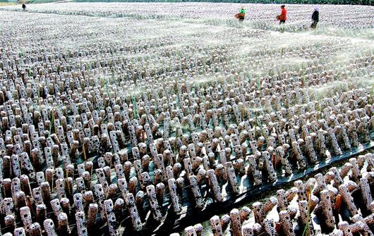 11月3日,房縣土城鎮通省館村農民在天禾食用菌扶貧產業基地采收黑木耳。該縣栽培耳菇達4000萬袋,年產值6億元,成為全國著名的“耳菇之鄉”,促進全縣6萬多貧困農民增收致富。(視界網 張啟龍 攝)