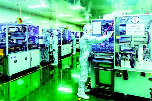 圖為:武漢光谷正在建設國家儲存器基地(一期)項目,其自主研發(fā)生產(chǎn)的中國首 款 64 層 3D NAND閃存芯片開始量產(chǎn),標志著國產(chǎn)存儲芯片向國際先進水平又跨出了一大步。(湖北日報見習記者 蔡俊 攝)