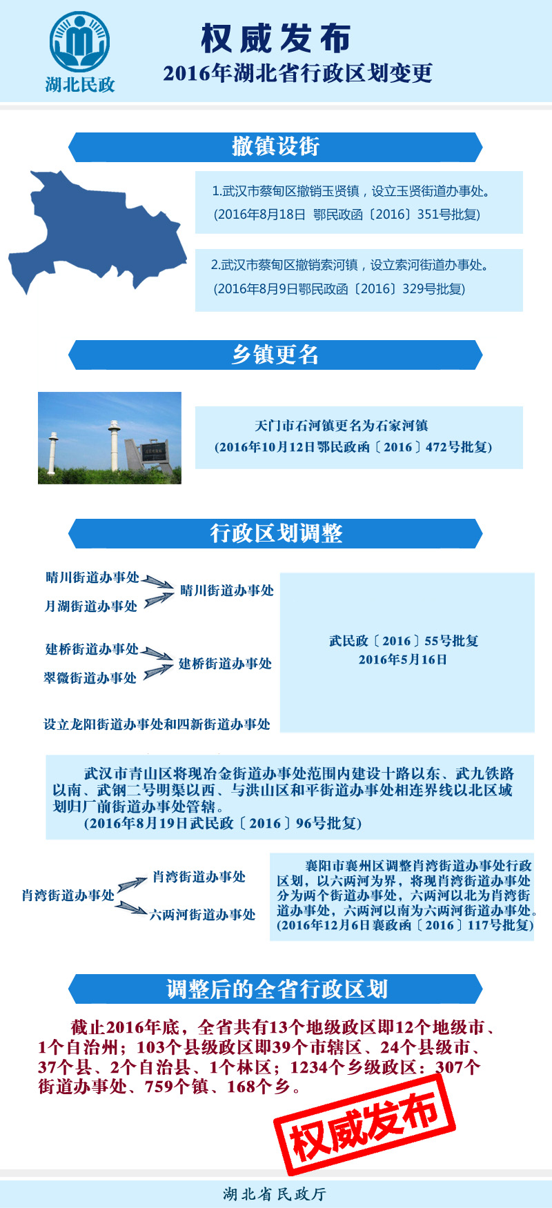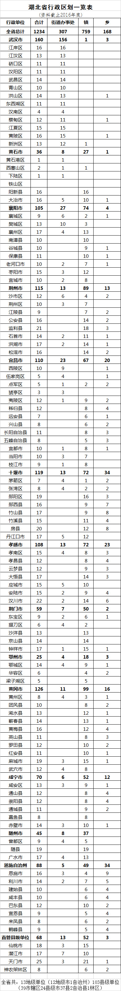 2016年湖北省行政區劃調整一覽表發布