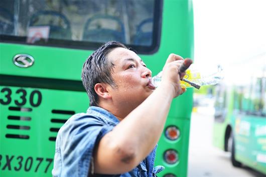 楚天金報訊 圖為:公交維修人員大口喝水 記者張吉晴攝
