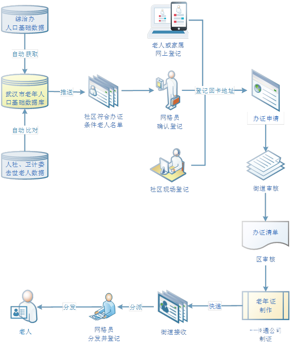 記者了解到,本次老年證辦理改革舉措包括四項(xiàng)。第一是下放老年證辦理權(quán)限,將老年證辦理權(quán)限下放到區(qū)級(jí),由各區(qū)民政局(老齡辦)負(fù)責(zé)組織本轄區(qū)老年證辦理工作;第二是完善武漢市養(yǎng)老服務(wù)信息平臺(tái),逐步完善武漢市養(yǎng)老服務(wù)信息平臺(tái),對(duì)接市綜治辦“武漢市社會(huì)服務(wù)與管理信息系統(tǒng)”以及公安、人力資源和社會(huì)保障、衛(wèi)生計(jì)生等部門數(shù)據(jù);第三是簡(jiǎn)化辦證程序,本市老年證與武漢城市一卡通兩卡合一,采取由社區(qū)(村)網(wǎng)格員、老年人或其代辦人登錄依托養(yǎng)老服務(wù)信息平臺(tái)、老年人或其代辦人直接到所在社區(qū)(村)現(xiàn)場(chǎng)登記等三種途徑進(jìn)行登記;第四是提高辦證效率,由武漢城市一卡通有限公司負(fù)責(zé)制證,制證時(shí)間從60日提速到15個(gè)工作日。最后是減免辦證費(fèi)用,新辦老年證免交工本費(fèi),首次補(bǔ)辦老年證工本費(fèi)由個(gè)人和市人民政府各承擔(dān)50%,第二次及以后補(bǔ)辦工本費(fèi)由個(gè)人全額繳納。