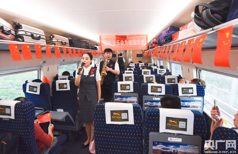 十一國慶節(jié)前夕,武漢客運(yùn)段以“高鐵音樂會(huì)為祖國慶生”為主題,在多趟列車上開展慶祝活動(dòng),喜迎建國68周年。
