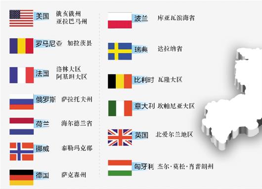 細(xì)數(shù)與湖北結(jié)好的40個(gè)國家,其中以美國、法國的“老友”居多,分別有10對和6對。