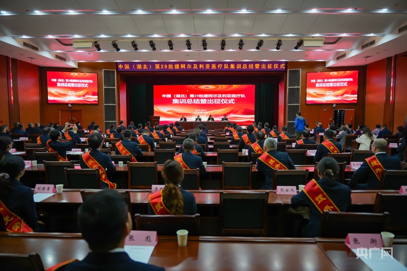 央廣網(wǎng)武漢11月26日消息(記者左洋)11月26日,中國(guó)(湖北)第29批援阿爾及利亞醫(yī)療隊(duì)(以下稱“援阿醫(yī)療隊(duì)”)集訓(xùn)總結(jié)暨出征儀式在武漢舉行。由68名醫(yī)務(wù)人員組成的醫(yī)療隊(duì)已完成為期5個(gè)月的全脫產(chǎn)集中培訓(xùn),即將啟程赴阿爾及利亞執(zhí)行為期兩年的援外醫(yī)療任務(wù)。