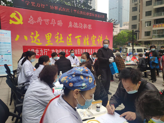 央廣網武漢4月8日消息(李磊 朱素芳 姚祖東)4月8日上午,協和武漢紅十字會醫院組織黨員醫生志愿服務隊走進江漢區常青街八達里社區,開展“學史力行”首場健康科普義診進社區活動。協和武漢紅十字會醫院13名專家現場為社區居民一對一進行醫療康復指導,給社區居民帶來了實實在在的關懷和幫助。