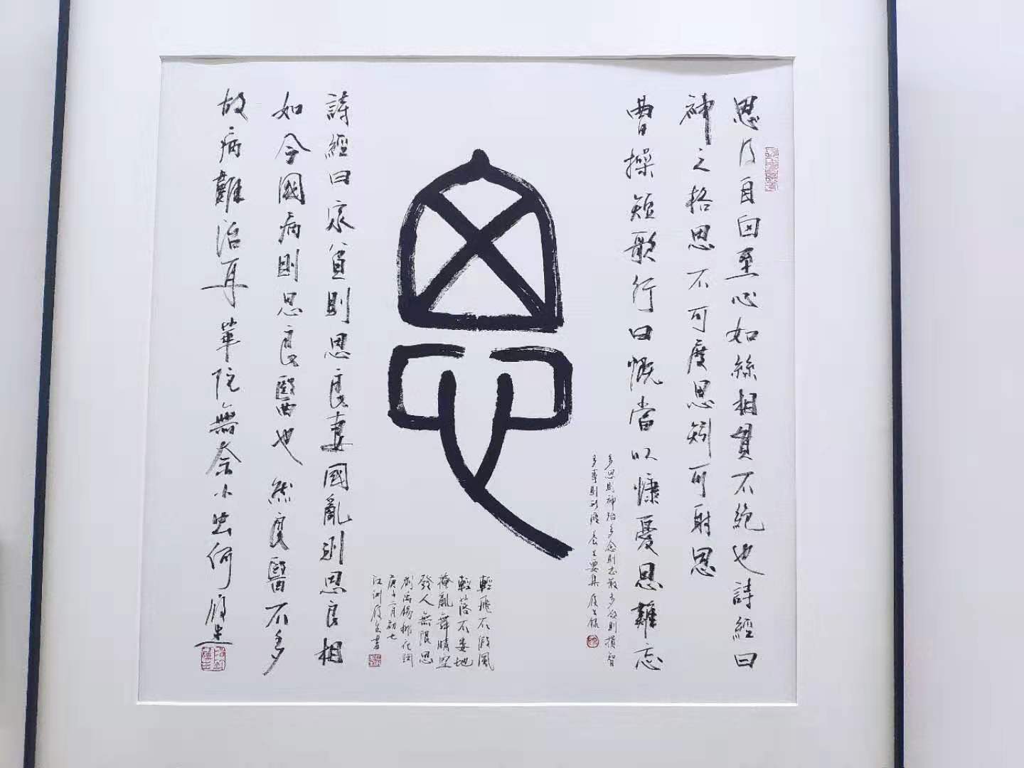 此次展覽展出藝術家陳履生于疫情期間在家經過反復思考、研究后書寫的100個漢字,意在通過對文字的書寫和解讀,反映出對人生、當下社會的自省與反思。在創作中,陳履生用接近現代繪畫的方式,將字的主體以篆書寫在中心位置,周圍以行書題跋書寫注釋、個人感悟等相關內容的方式,以強化對這個字的認識過程,使人有更深刻的理解。