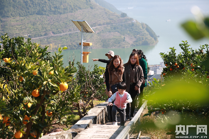 放眼望去,成片的橘林遍布在長(zhǎng)江兩岸,黃澄澄、金燦燦的柑橘點(diǎn)綴其間,構(gòu)建了一幅林水相依、生態(tài)優(yōu)美的美麗畫卷。以長(zhǎng)江為背景,依偎著橘樹,大家不停地忙著在橘園拍照留影。橘園里,游客們不僅可以欣賞漫山遍野的橘林美景,還能親自采摘品嘗新鮮橘子。