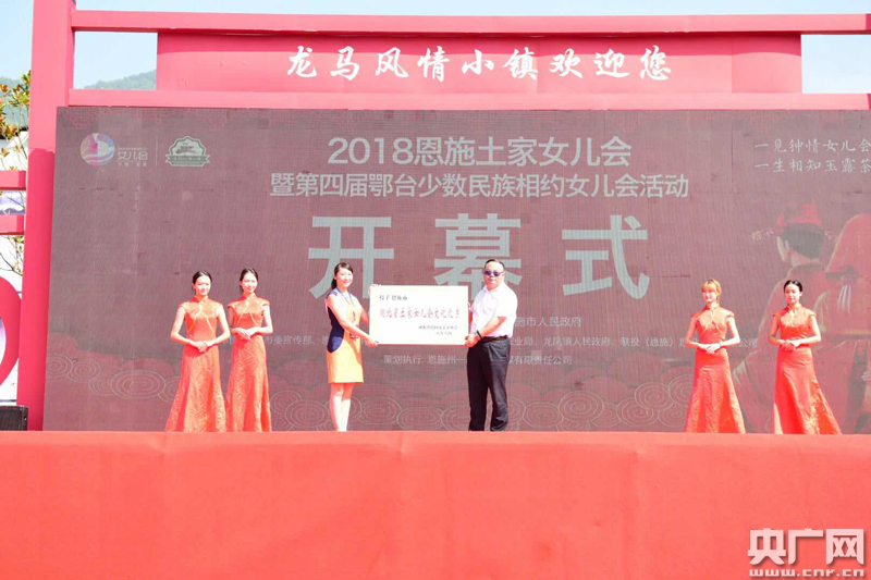 湖北省文聯黨組成員、副主席肖偉池現場授予恩施市“湖北省土家女兒會文化之鄉”的稱號。