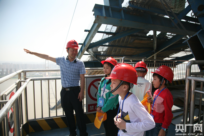 9月29日,中鐵大橋局集團公司團委書記周開富為孩子們講述了大橋建成的故事。(央廣網發 通訊員王一凡 攝)