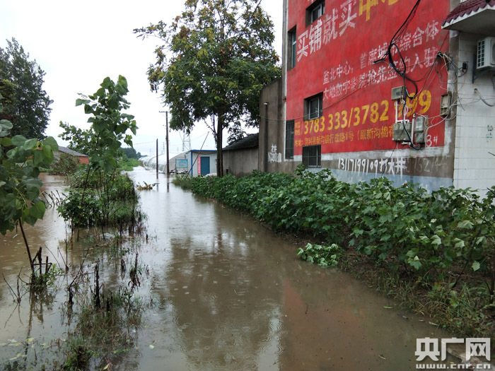 圖一:監利市遭遇持續強降雨,水已蔓延至農戶門口。央廣網發 記者左艾甫 攝