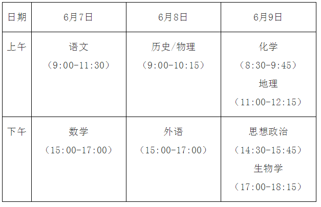 今年起,全國統一高考和高中學業水平選擇性考試安排3天,采取分科分卷考試方式進行,其中:1天半安排全國統一高考科目,1天半安排高中學業水平選擇性考試科目。