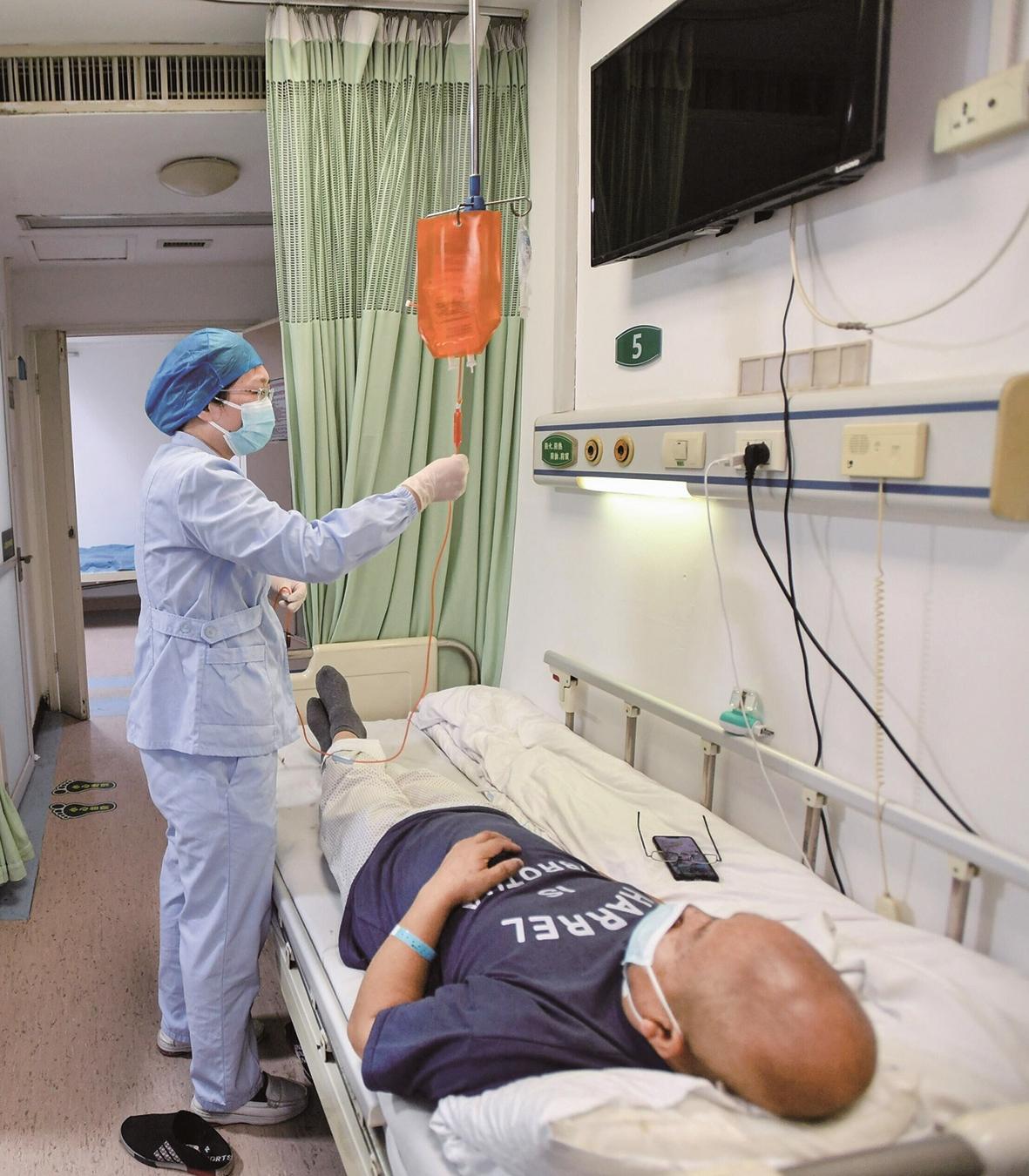 醫(yī)護(hù)人員昨?yàn)榛颊呤褂媒祪r(jià)后的抗癌藥品 楚天都市報(bào)極目新聞?dòng)浾咄跤绖贁z
