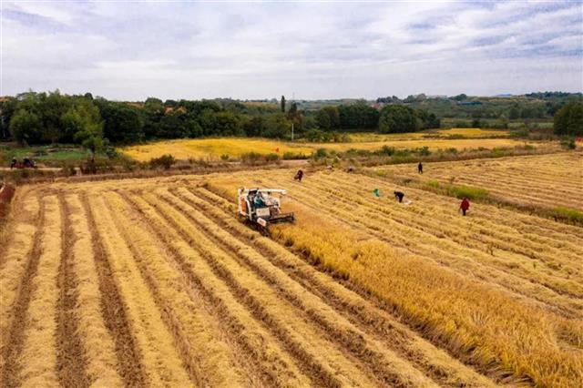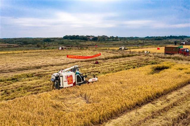 湖北日?qǐng)?bào)訊(記者祝華、通訊員朱赟、龔政、郭強(qiáng))10月13日,位于武漢東湖高新區(qū)濱湖街張家灣村的300余畝“太空稻”開(kāi)始收割,喜迎豐收。