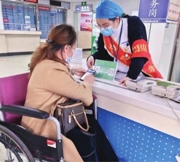 在華潤武鋼總醫院,市民使用國家醫保電子憑證掃碼支付。